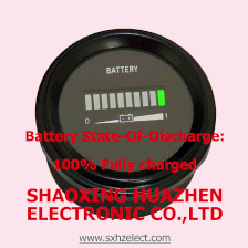 Battery state of charge & discharge indicator